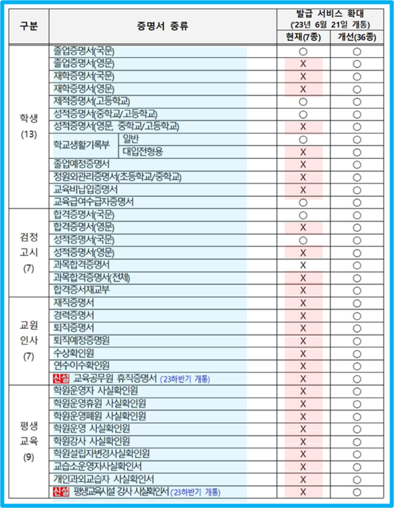 온라인 교육 민원 발급서비스 확대내용