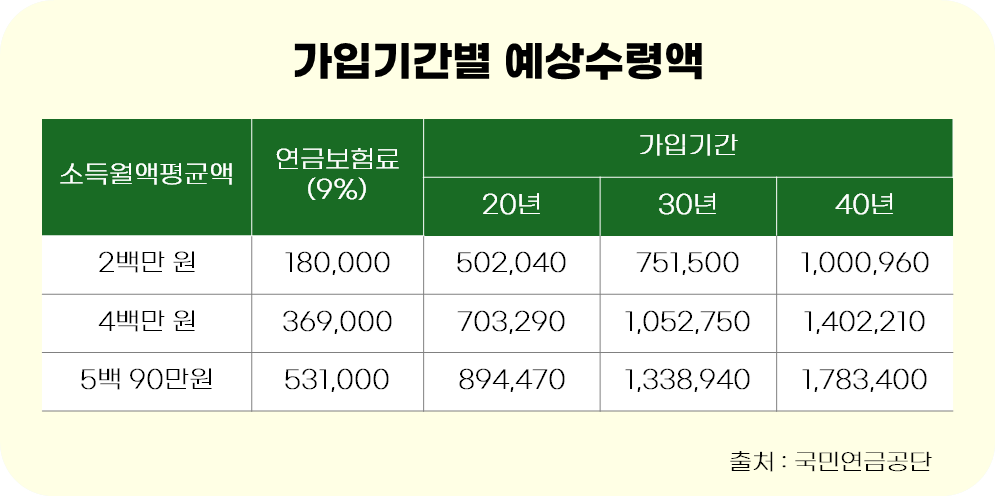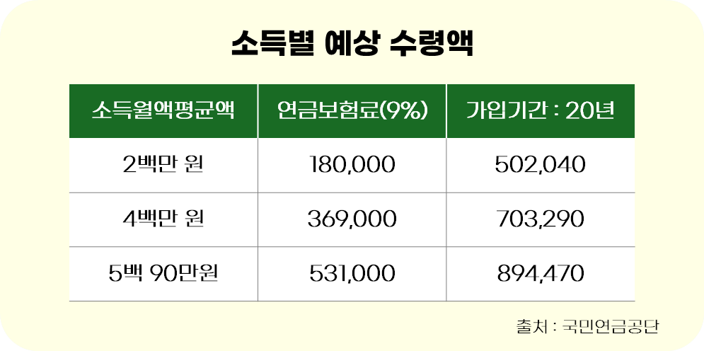 국민연금 수령액은 주로 소득과 가입기간에 따라 달라집니다. 기본적인 계산식은 다음과 같습니다