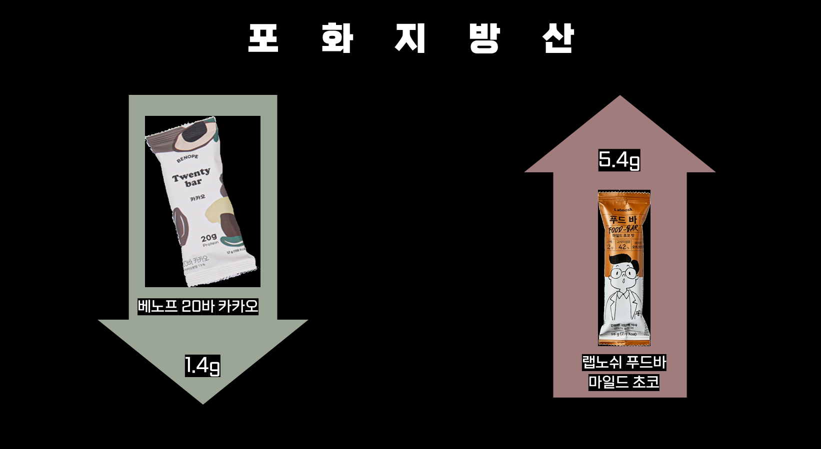 혈중 중성지방 및 콜레스테롤 수치에 영향을 주는 포화지방산 함량이 가장 낮은 제품은 베노프 20바 카카오 제품이었고요 가장 높은 제품은 랩노쉬 푸드바 마일드 초코 제품이었습니다.