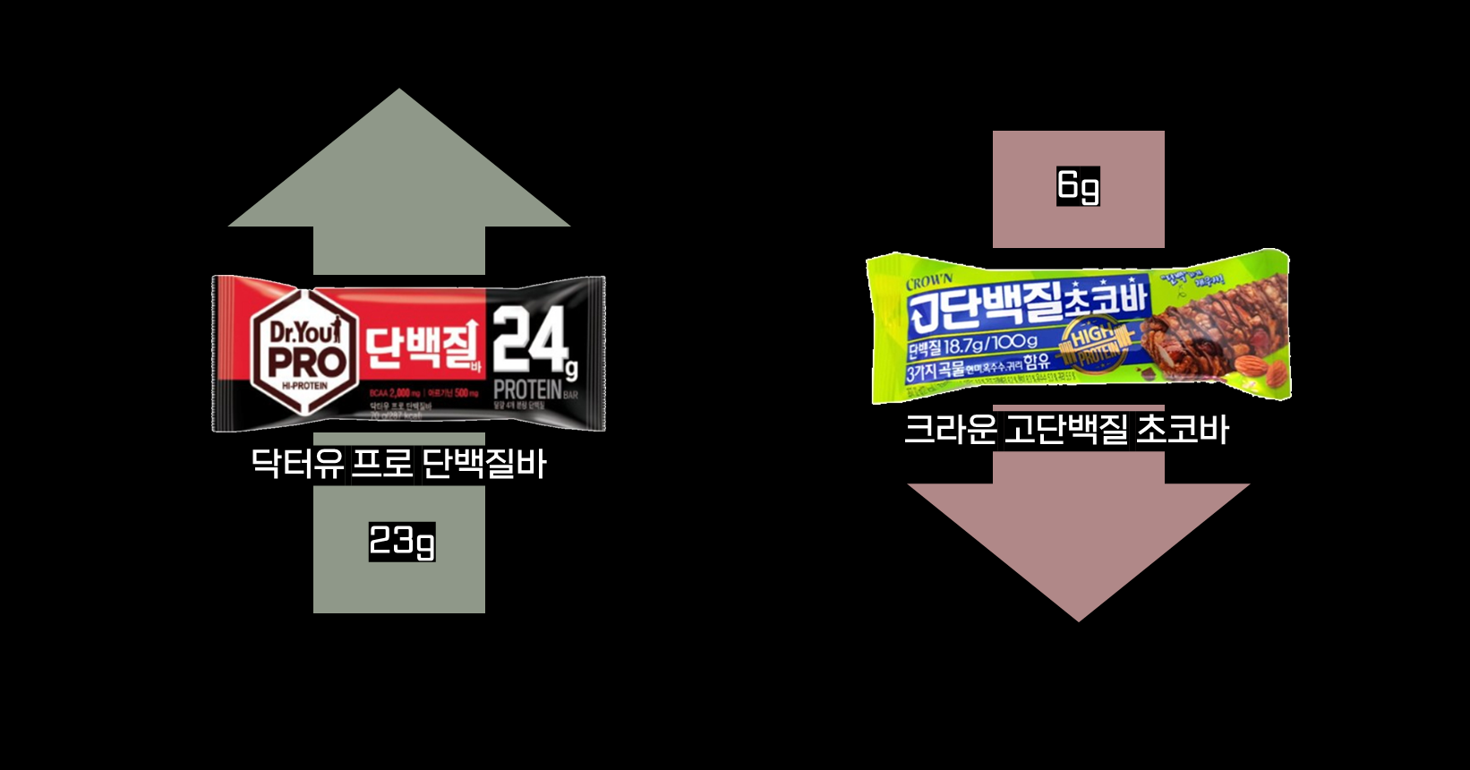 반대로 가장 함량이 낮은 제품은 크라운 고단백질 초코바 제품이었습니다.
