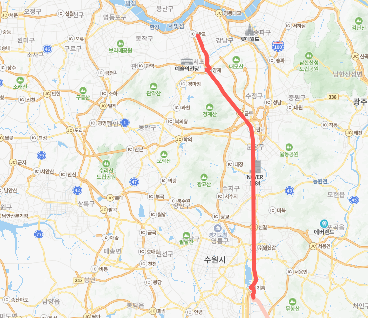 → 양재역.서초문화예술회관 → 신분당선강남역(중) →지하철2호선강남역(중)