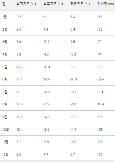 밴쿠버 월별 평균 기온