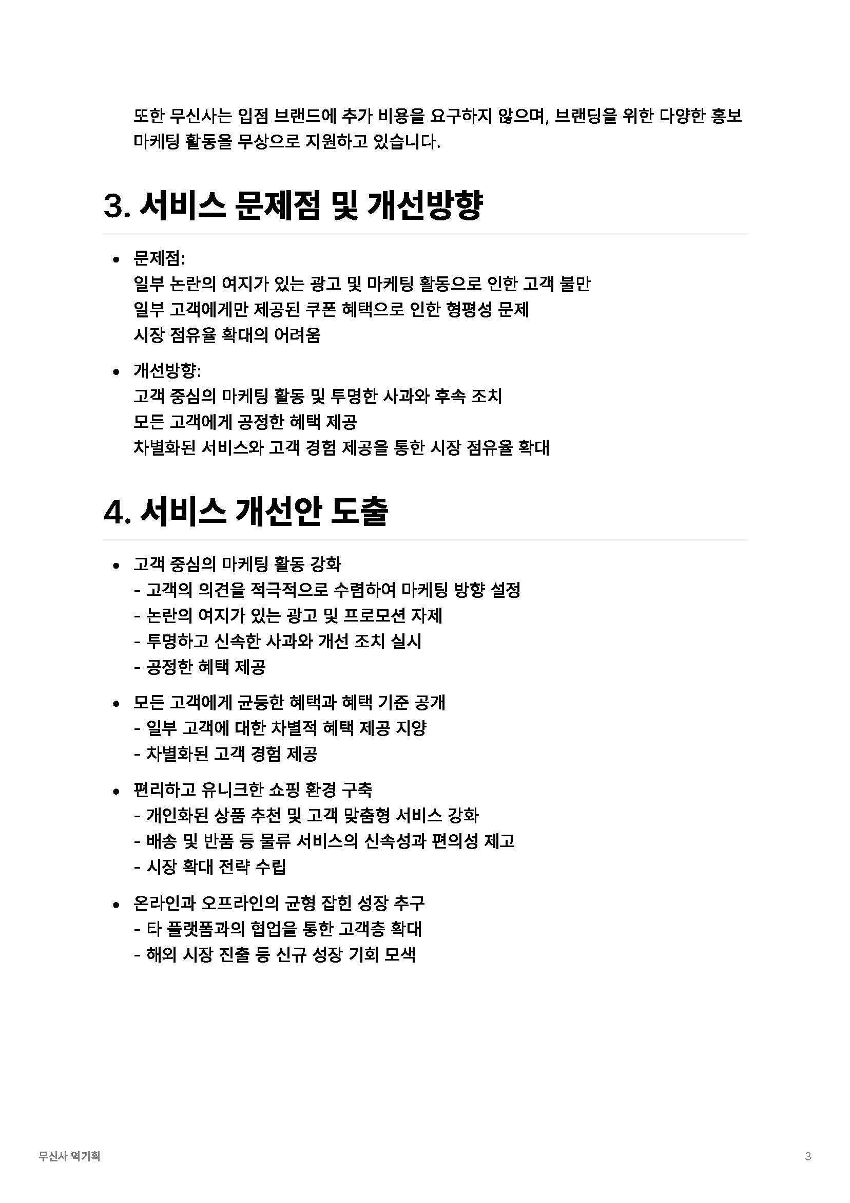 세 번째 주차는 이커머스 분야의 역기획 프로젝트를 시작했습니다. 기존의 이커머스 서비스를 분석하고 개선점을 찾는 과정을 진행했습니다. 역기획의 중요성을 실감할 수 있었으며, 이를 통해 더 나은 서비스를 기획하는 방법을 배웠습니다.