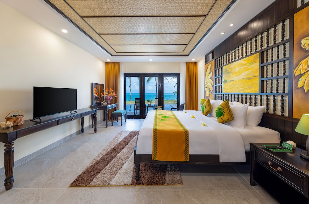 팜 가든 비치 리조트는 끄어다이 해변과 가까운 위치에 자리 잡고 있어 바다 산책을 즐기기에 좋은 리조트입니다. 해변까지 도보 5분 이내로 이동할 수 있어 편리하며, 호이안 야시장이나 올드타운으로의 접근성도 뛰어납니다. 전통적인 베트남 스타일의 객실과 잘 가꿔진 정원이 어우러져, 여유롭고 조용한 분위기 속에서 휴식을 취하기 좋은 곳입니다.
