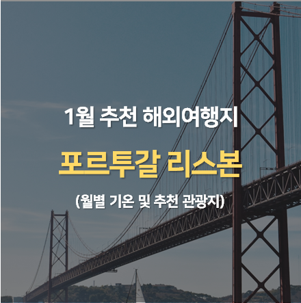 1월에도 리스본은 따뜻한 날씨를 누릴 수 있는데, 평균 기온이 10°C (50°F) 정도로 겨울이라 할지라도 한국의 추운 날씨와는 비교할 수 없는 상대적으로 따뜻한 날씨를 경험할 수 있습니다. 따뜻한 옷차림과 함께 여행을 즐기시면 좋을 것입니다.