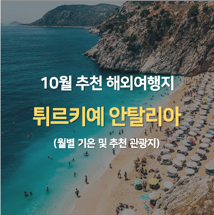 아름다운 해변과 산악 지형, 유적지 등 다양한 볼거리와 즐길거리를 제공합니다. 10월은 안탈리아를 방문하기에 좋은 시기입니다. 날씨가 따뜻하고 습도가 낮아서 해변에서 휴식을 취하거나 야외 활동을 즐기기에 좋습니다. 또한, 10월에는 안탈리아에서 다양한 축제가 개최됩니다.