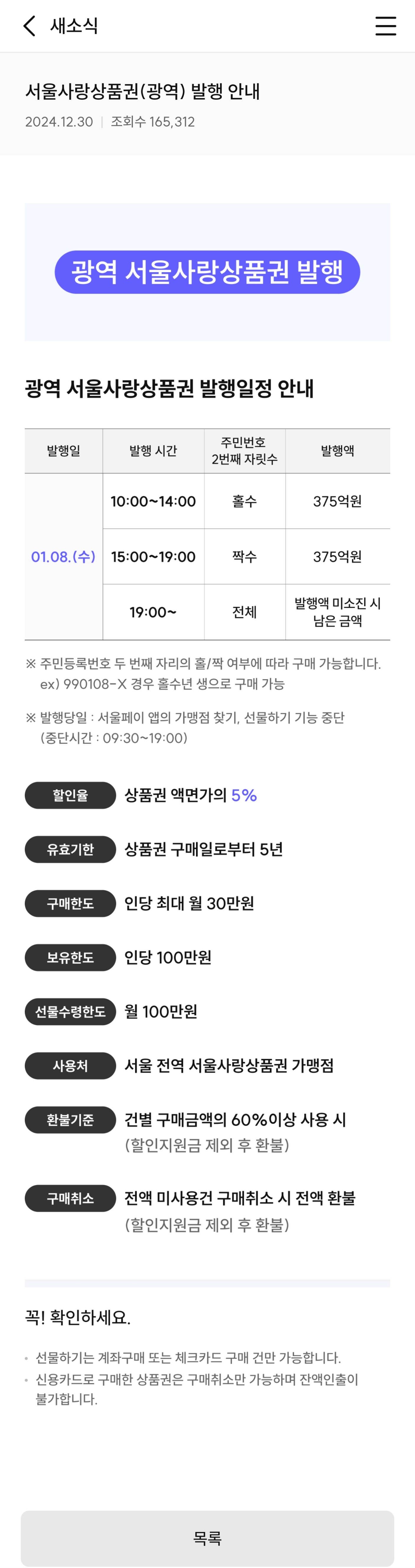 2025년 1월 8일에 발행되는 서울사랑상품권은 홀수년생과 짝수년생에 따라 구매 시간이 다르니 주의해야 해요.