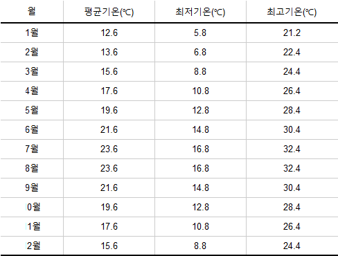 3월: 약 20도 (온화하고 상쾌한 기후로 편안한 여행 가능)