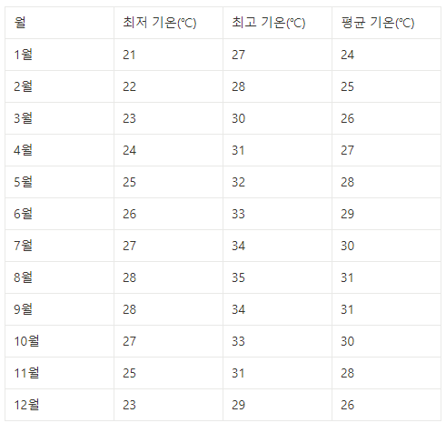 사이판의 월별 평균 기온